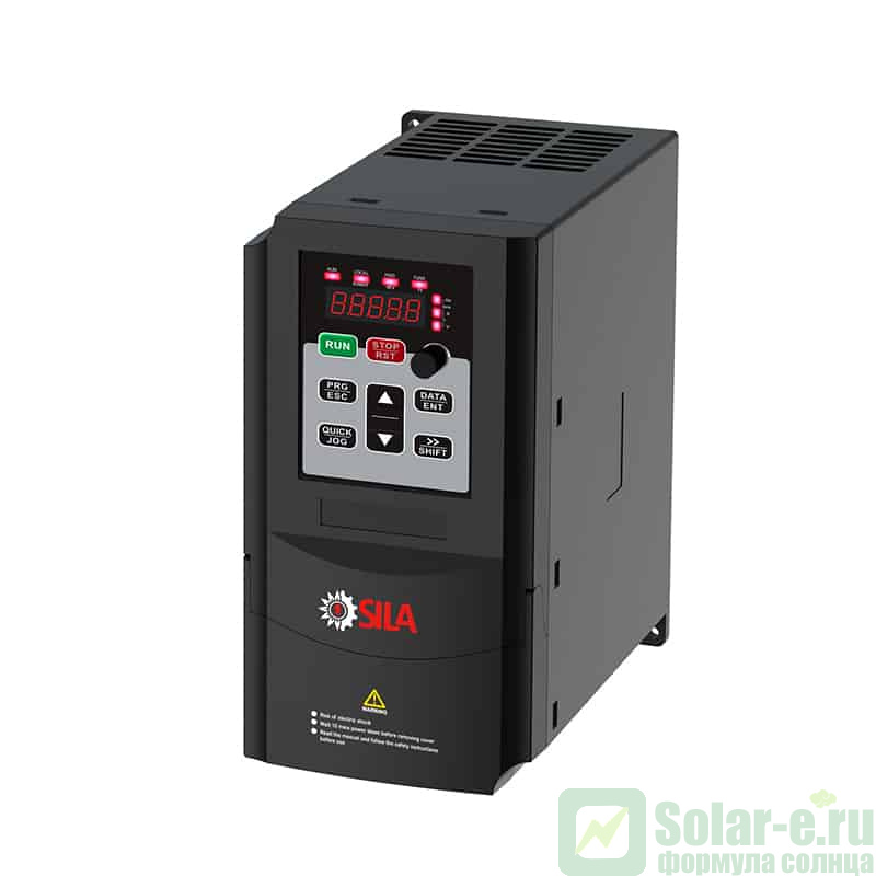 Трехфазный частотный преобразователь SILA A2.2G-T4 управляет частотой оборотов электродвигателя мощностью 2.2 кВт.