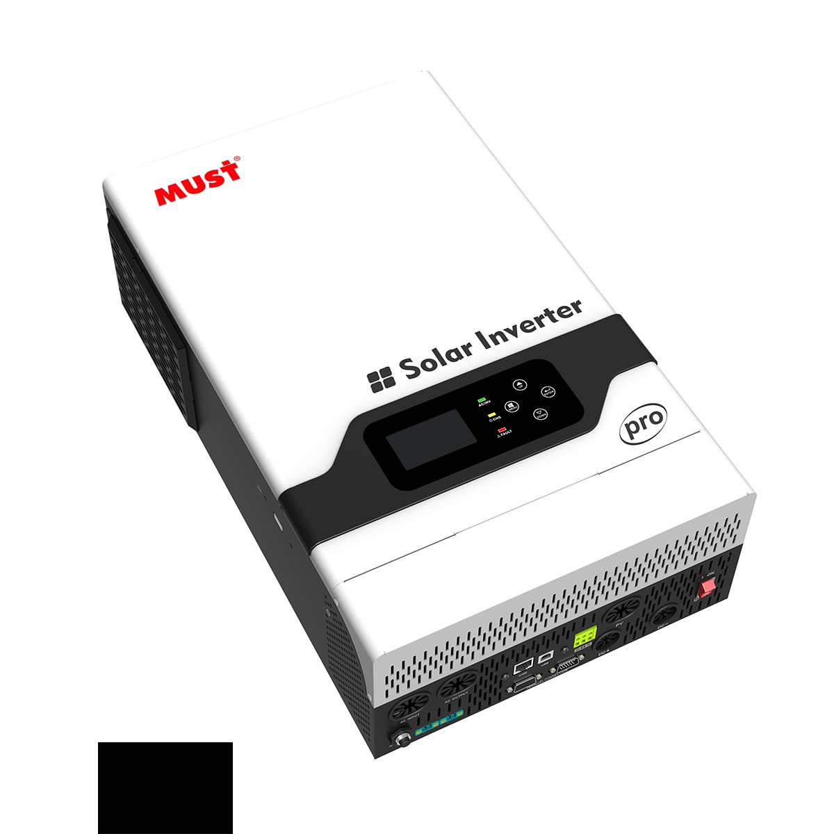 Гибридный солнечный инвертор MUST PV18-6048 PRO II (PF 1.0) для дома и дачи это многофункциональный инвертор/зарядное устройство мощностью 6 кВт ( кратковременно 12 кВт ) в котором сочетаются функции инвертора, контроллера заряда аккумуляторов от солнечных батарей и зарядного устройства аккумуляторных батарей от сети 220В ( или генератора ) для обеспечения бесперебойной подачи питания, с возможностью выбора приоритетов зарядки и нагрузки. Используется в солнечных электростанциях и системах бесперебойного питания.